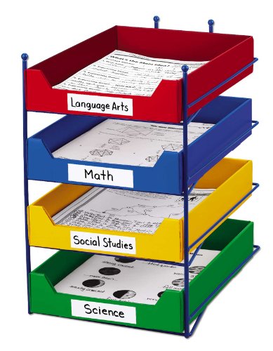 It's easy for students to hand in their work-with our convenient desktop organizer! Four roomy, easy-access storage trays each hold more than 500 sheets of standard-size paper...so you can easily collect and organize homework, classroom quizzes, school notes and more. Metal rack is 15 1/2" tall; sturdy corrugate trays measure 9" x 12 1/2" x 2 1/4" high.