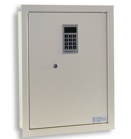 This safe is great for personal use at home or office. The PWS-1814E is equipped with a digital keypad for easy operation and maintenance. Features; Burglary Resistant wall safe with digital electronic locking system Velvet lined interior Motorized locking bolt system will open the door automatically Designed to be installed between 16" o/c wall studs Approximately .44 cubic feet of storage space Key lock override system. (2 keys included) Power override included Dual live motorized chrome bolts (3/4" dia.) Made of heavy duty gauge steel 2 Removable shelves Spring loaded door High quality VELVET INTERIOR Flush digital keypad Door thickness is 5/8" formed steel Specifications: Exterior Dimensions: 14-1/8" (W) x 18-1/4" (H) x 3-7/8" (D) Interior Dimensions: 14" (W) x 18-1/8" (H) x 3" (D) Flange Size: 16" (W) x 20 " (H) Anchor Holes: 3 per Side (6 Total) Cubic Inch: 0.44 Weight: 28 Lbs.